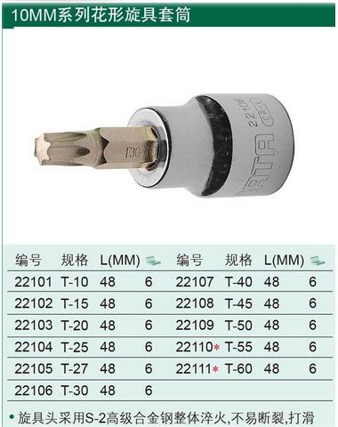 > 全部产品分类 > 五金工具 > 手动工具 > 扳手/套筒/扭矩扳手 > 套筒 > 10MM系列花型旋具套筒
