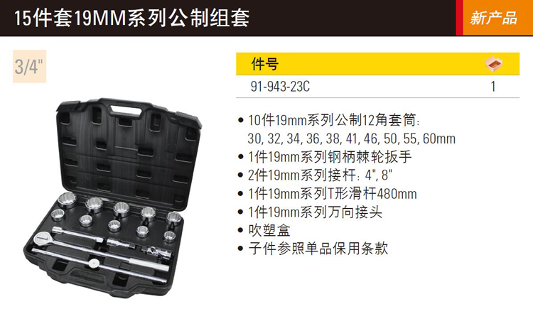 > 全部产品分类 > 五金工具 > 手动工具 > 扳手/套筒/扭矩扳手 > 组套扳手 > 15件19MM系列公制组套